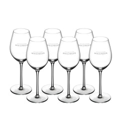 Elegantly presented with Bollinger branding, this tulip-shaped crystal glass is designed to enhance and showcase the complex characteristics of Champagne Bollinger. The glass beautifully highlights the effervescent chains of bubbles, while its curved shape allows aromas to breathe and develop fully. This glass makes the perfect gift for lovers of Bollinger champagne. To enhance its unique style, bouquet, and aromas, serve Champagne or sparkling wine between 8 and 10°C.