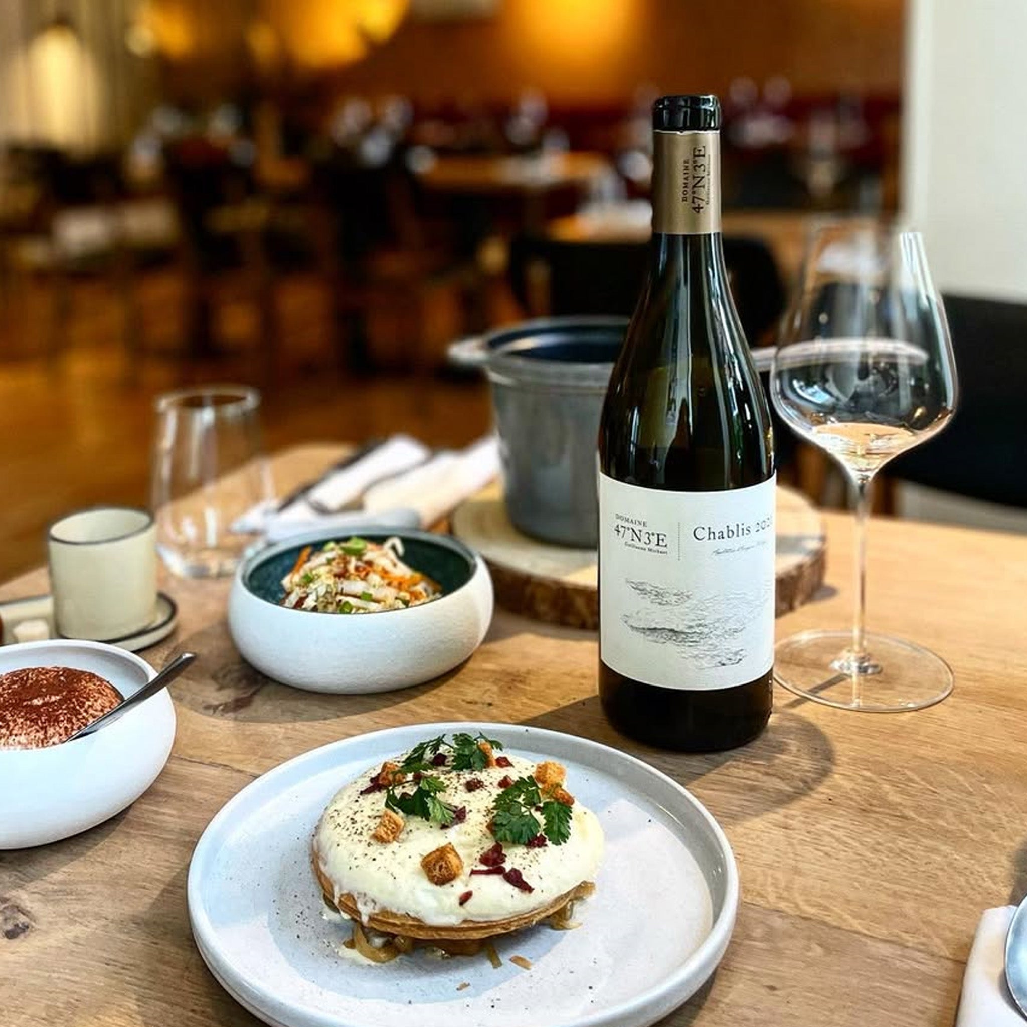 Domaine 47°N3°E is the result of Guillaume Michaut’s passion for his roots, combined with his vision for a modern approach to winemaking. Located at the crossroads of 47° North and 3° East, Guillaume’s estate is a true reflection of the region’s rich history and terroir. The vineyard, with its family legacy dating back to the 1960s, was originally planted by Guillaume’s grandfather in the village of Beines. His grandfather’s early commitment to quality plantings was instrumental in earning the village its Chablis appellation recognition. Now working on his own since 2018, Guillaume applies his meticulous approach to a small but precious selection of family-owned vines, producing wines that embody both tradition and innovation. His deep connection to the land and respect for its natural rhythms are at the core of every bottle produced at Domaine 47°N3°E.