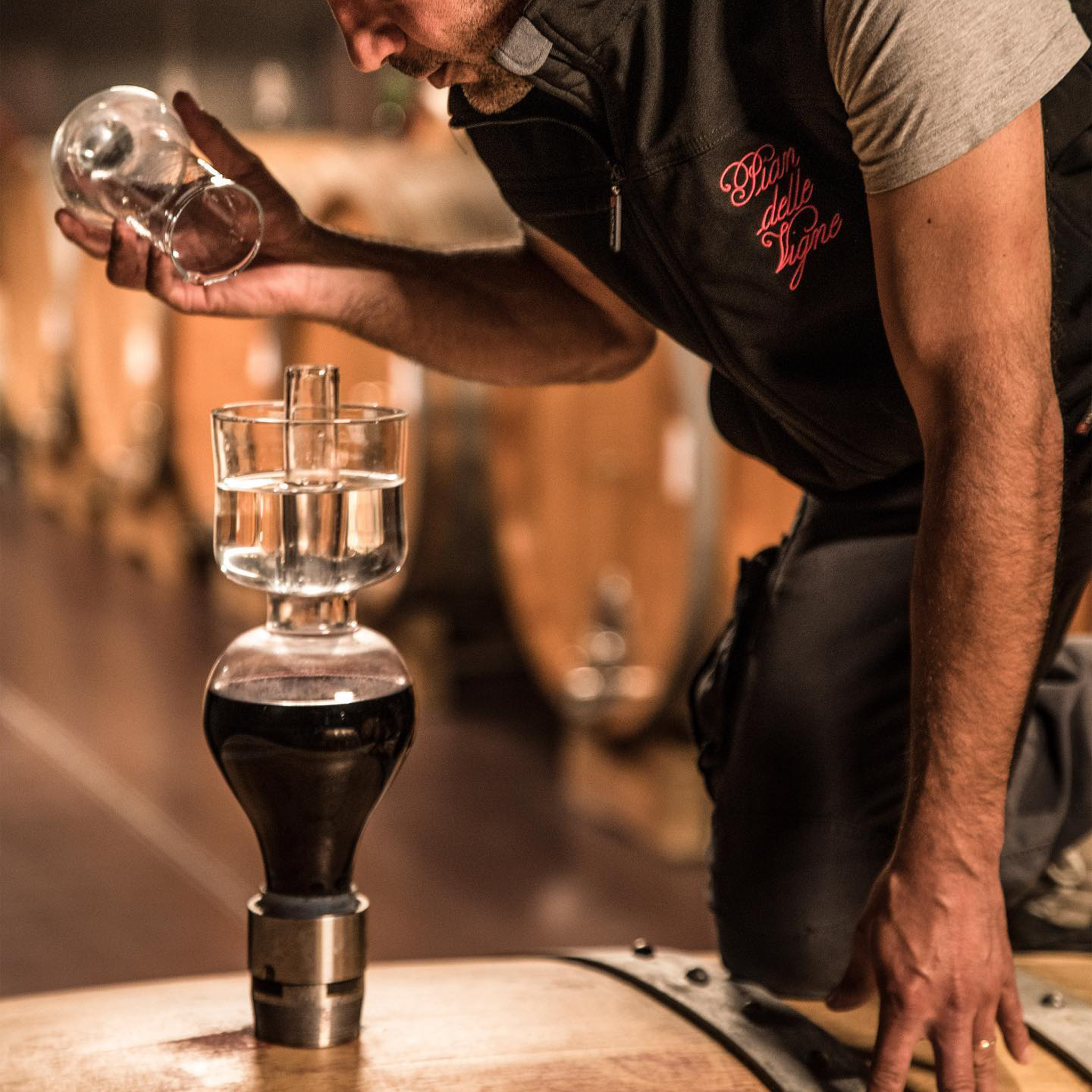 For vinification, the harvested grapes were brought to the cellar, destemmed, gently crushed and transferred into stainless steel vats where alcoholic fermentation occurred. Maceration on the skins took place over a period of approximately 12 days at a controlled temperature of 28 °C (82 °F). After malolactic fermentation, the wine was transferred to oak barrels of varying capacities, between 30 and 80 hl, where it aged in the barrel for two years. Pian delle Vigne was then bottled and aged for a lengthy period before being released.