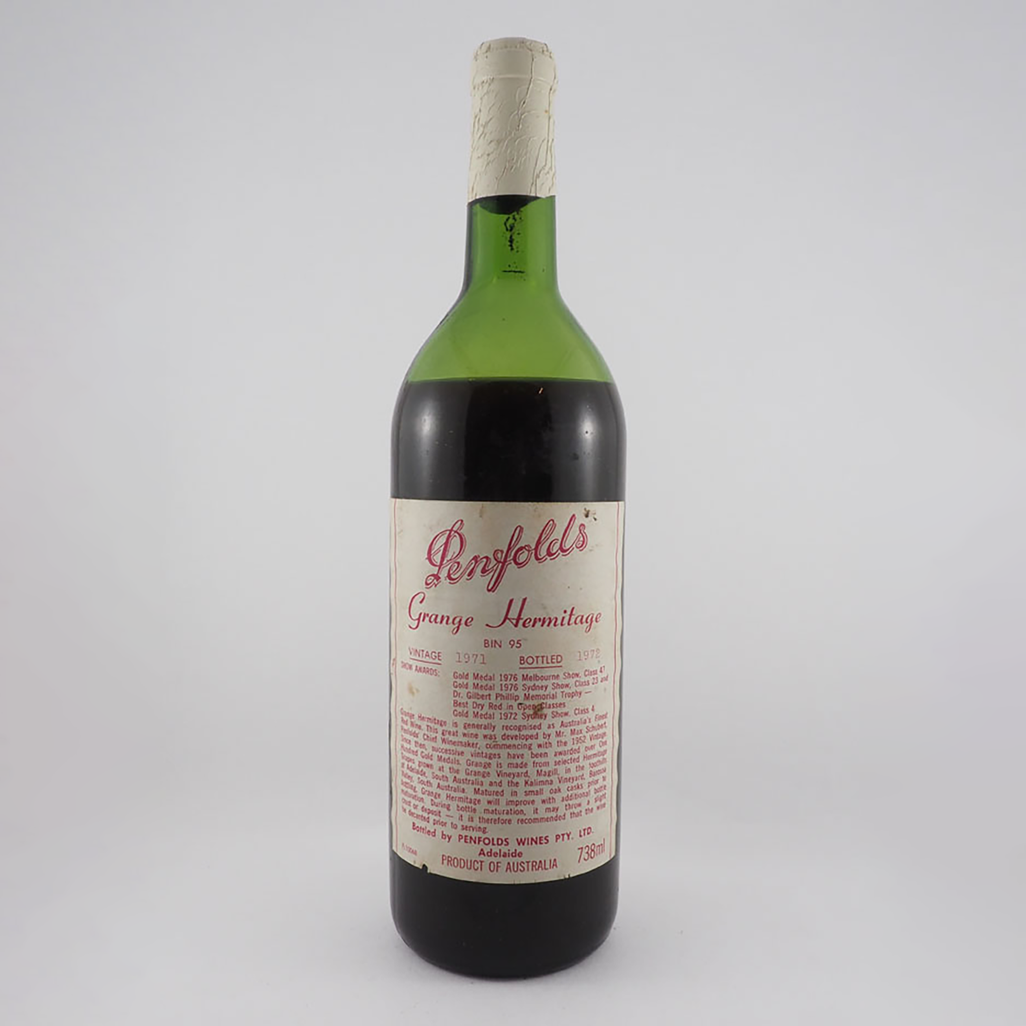 This wine is a blend of 87 per cent Shiraz and 13 per cent Cabernet Sauvignon and created a sensation when it won gold and topped its class at the Gault-Millau Wine Olympiad in Paris in 1979, beating the best Rhone Valley wines. It also won a trophy, four gold, four silver and five bronze medals at Australian wine shows between 1971 and 1982.